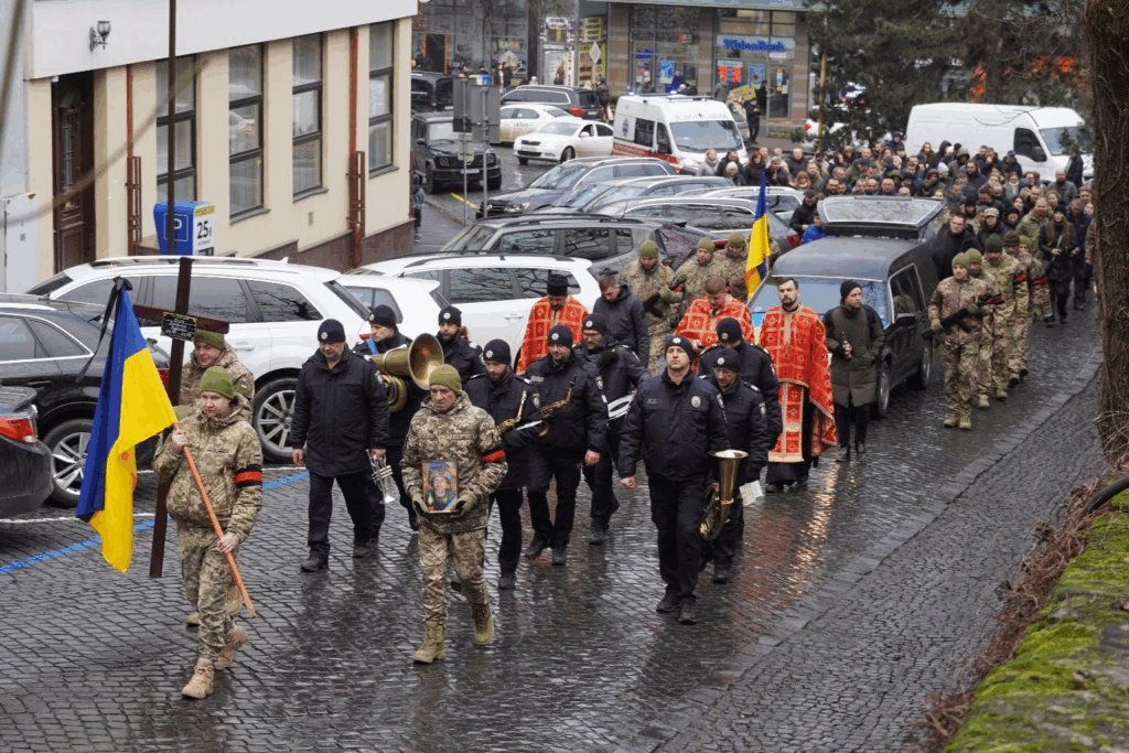 Чин похорону відбувся на площі Народній. Віддати шану полеглому прийшли рідні, друзі, військові, ужгородці, в.о. міського голови, заступник міського голови Михайло Маргіта.