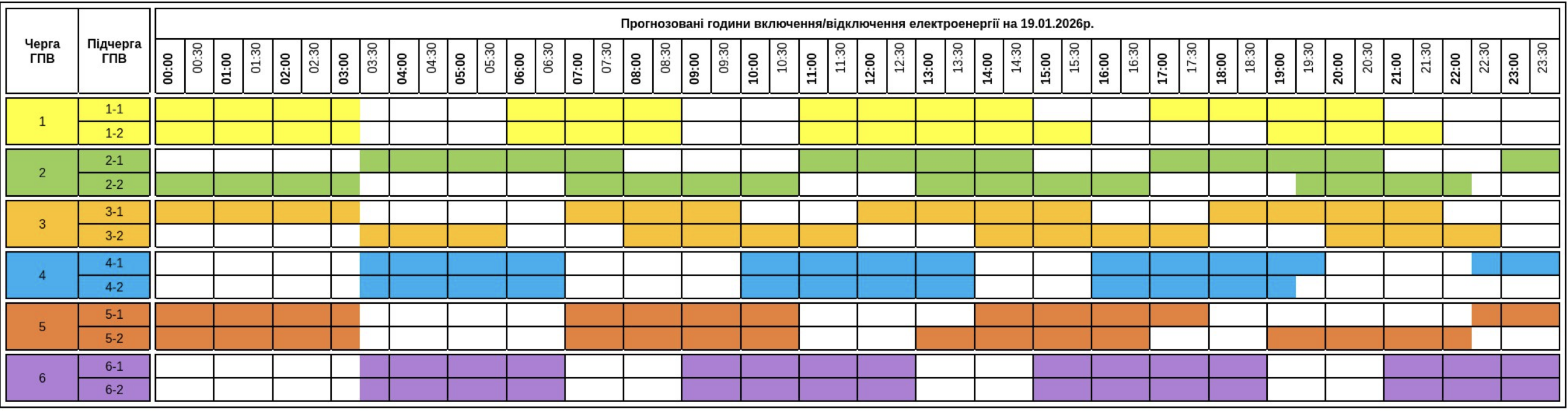 19 січня на території Закарпатської області застосовуватимуться графіки погодинних відключень електроенергії.