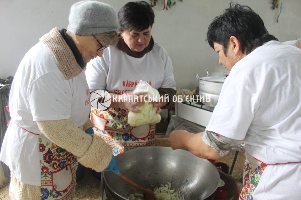 Так, команда з Верхньотисянського регіону вже традіційно приготувала типовий суп із капустою та м’ясними фрикадельками. Представники Виноградівщини частували гостей свіжим вареним салом із паприкою та часником, у казанку смажили свіжину, яку подавали з квашенням. Команди Берегівщини готували кров’янку, печінкову гурку, боґрач-гуляш і голубці з копченим м’ясом у квашеній капусті.