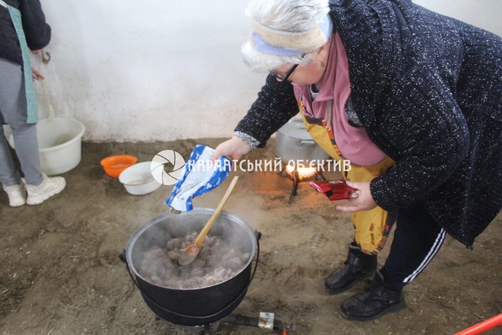 Ужгородщину представляла велика група ґаздинь із Часлівців, які на сніданок приготували смажений кров із цибулею та свіжі шкварки, а згодом – ковбаси й страви зі свіжини. Цьогоріч до конкурсу долучилася й команда Закарпатського обласного угорського драматичного театру, представники якої готували ковбаски, кров’янку та гурку.