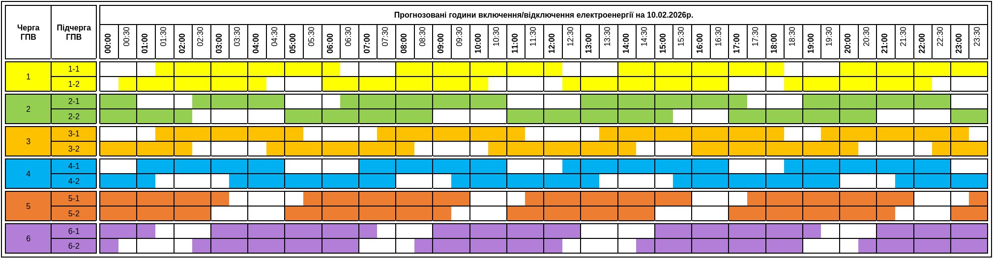 Енергетики опублікували прогнозований графік погодинних включень та відключень електроенергії на 10 лютого 2026 року.