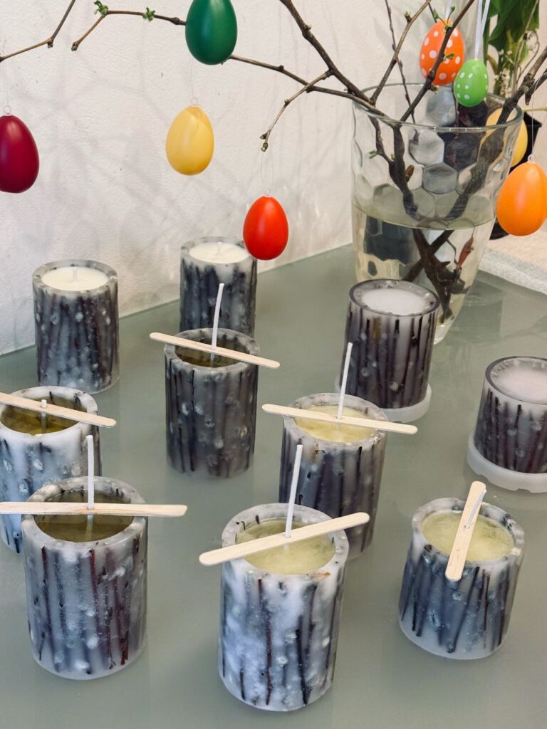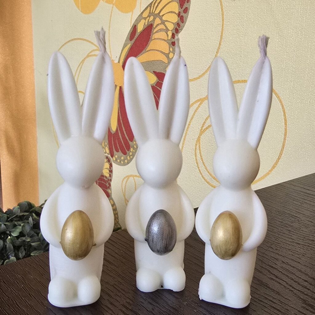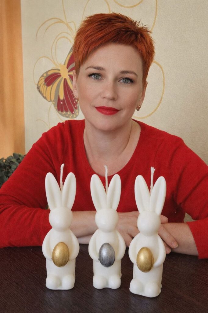 «Свічки можна робити з різного воску: соєвого, бджолиного, парафінового. Кожен матеріал поводиться по-своєму, тому потрібно навчитися правильно з ним працювати. Це дуже цікавий процес, бо постійно відкриваєш для себе щось нове», – пояснює вона. – Зараз активно експериментую з матеріалами, кольорами і формами. Маю в доробку як прості мінімалістичні свічки, так і фігурні композиції, які виглядають майже як маленькі скульптури. Особливу увагу приділяю святковим свічкам. Наприклад, до Великодня створюю фігурні свічки у вигляді зайчиків, яєць та інших символів свята».