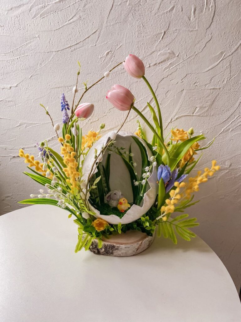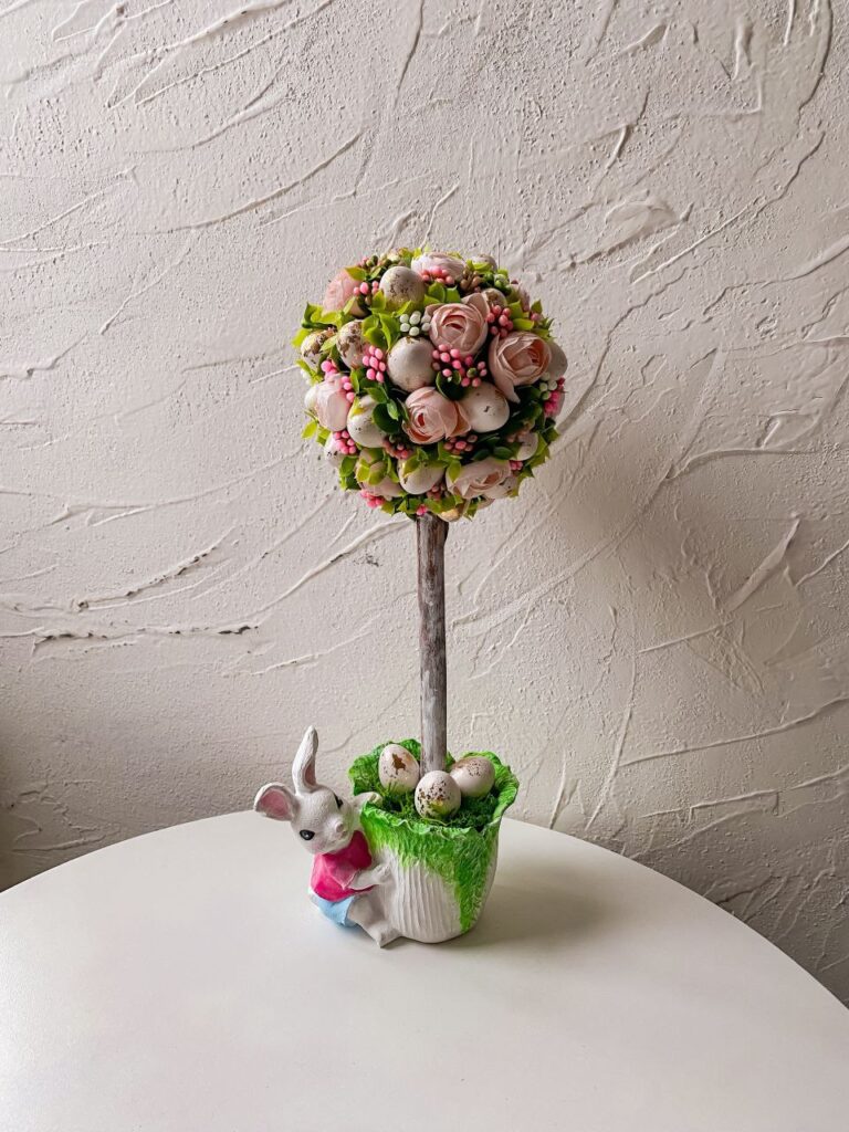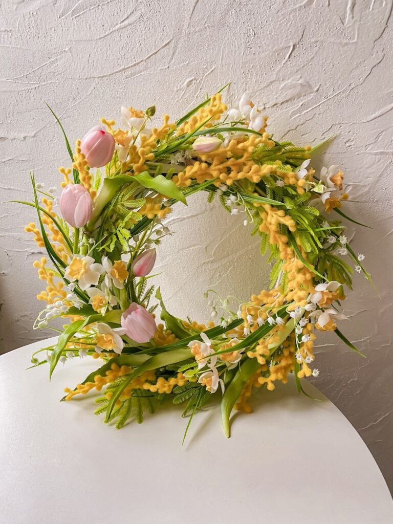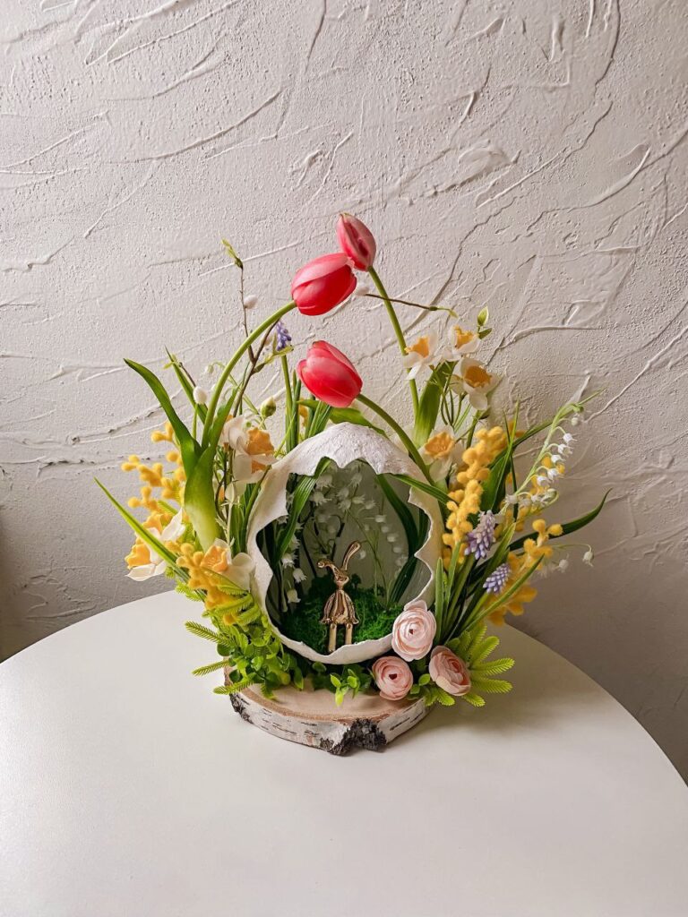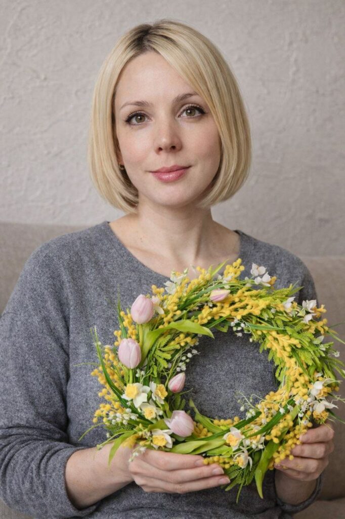 «Я можу довго дивитися на тюльпан або гілочку мімози. Люди проходять повз, а я думаю: як передати цей вигин пелюстки, цей відтінок жовтого? – наголошує вона. – Особливе місце у моїй творчості займають саме великодні композиції. Ідея створювати вінки виникла торік перед святами. Хотілося зробити щось тепле, домашнє. Великдень – це ж не тільки кошик і паска. Це атмосфера. І я подумала: чому б не створити вінок, який буде служити роками? На відміну від живих квітів, пластикові композиції не в’януть і можуть прикрашати оселю багато сезонів поспіль. Саме це стало однією з причин вибору матеріалу. Мені важливо, щоб річ жила довго. Людина купує вінок – і кожної весни дістає його знову. Це вже стає частиною сімейної традиції».