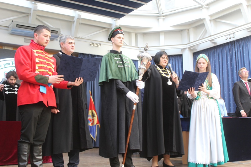 Ключовим моментом події стала церемонія представлення, освячення та передачі офіційних університетських символів. Мантія — знак належності до європейської академічної спільноти, свободи науки та гідності знань — була вручена президентці університету Ілдіці Орос, ректору Степану Черничку, а також представникам академічної спільноти.