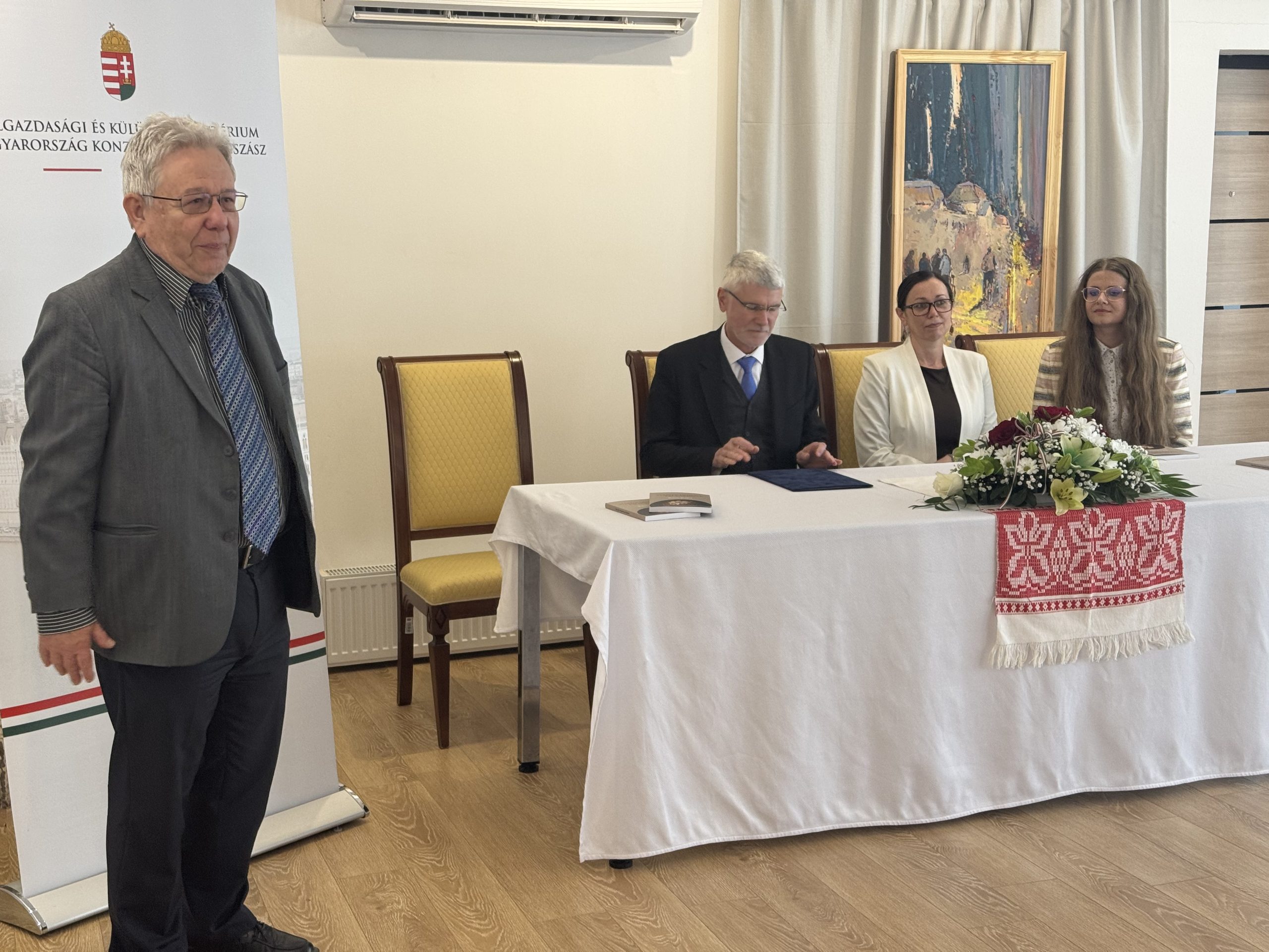 Присутніх привітав консул Іштван Дєбнар, після чого своїми думками поділився керівник дипломатичної установи Ласло Віда: «Обрана тема особливо актуальна в період Великодніх свят, тож для нас велика честь приймати цю презентацію. Плекання народної музики, танцю, ремесел та старовинних промислів значною мірою сприяє збереженню надзвичайно багатої та різноманітної культури угорців Закарпаття. Окрім віри та рідної мови, культура й традиції є тим нерозривним зв’язком, що поєднує частини нації. Саме він надає сили закордонним угорським громадам, особливо у ці складні часи. Народне мистецтво – це не лише культурна цінність, а й туристична принада: воно викликає інтерес у вітчизняних та іноземних гостей, одночасно зміцнюючи існуючі та створюючи нові зв’язки всередині місцевих громад».