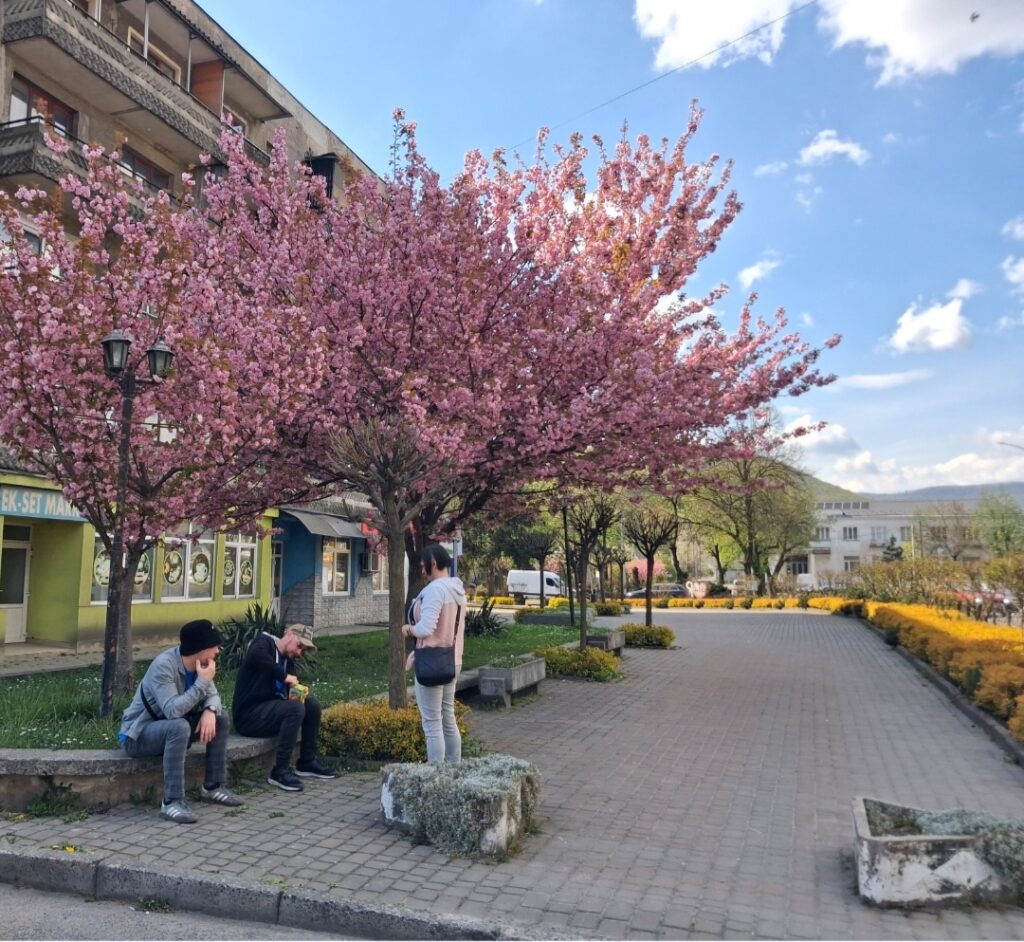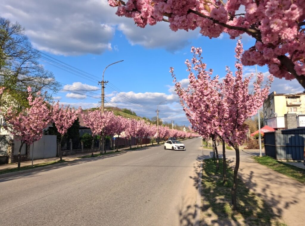 У Перечині таки сталося рожеве диво – задубілі сакури розцвіли і під ними заходи провели