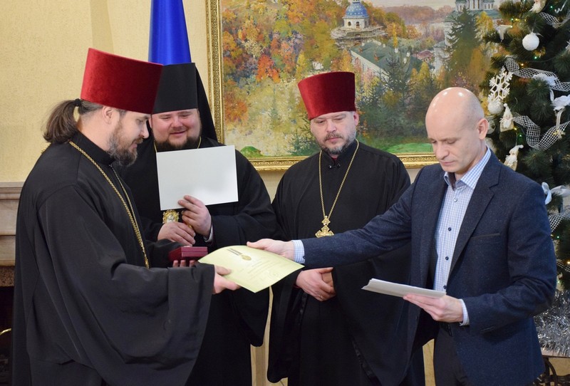 У п’ятницю, 21 грудня, виконуючий обов’язки голови Закарпатської облдержадміністрації Ярослав Галас передав чотирьом військовим капеланам Православної церкви України відзнаки Президента «За гуманітарну участь в антитерористичній операції».