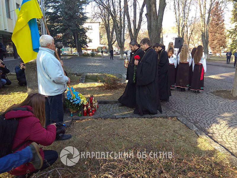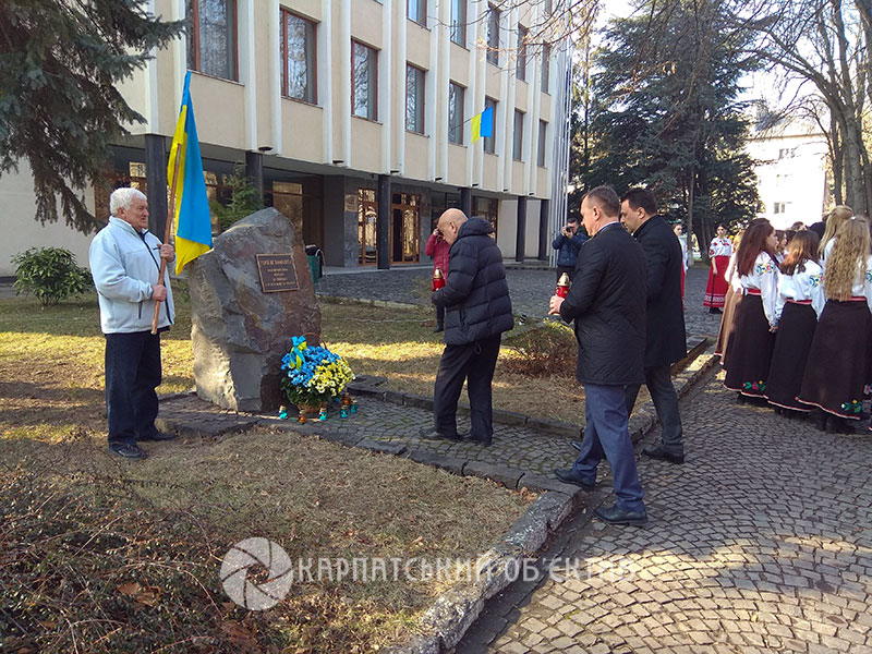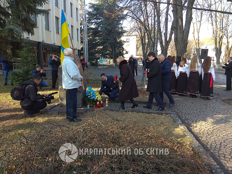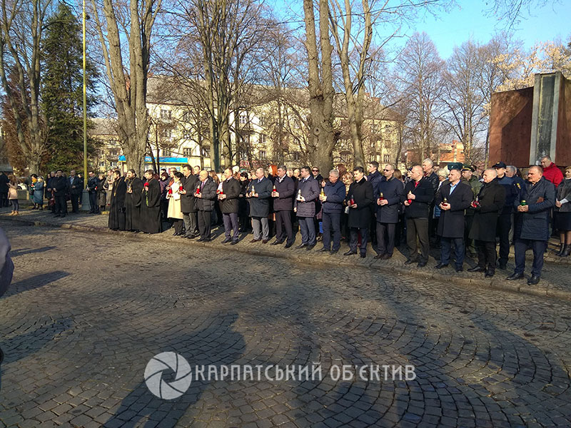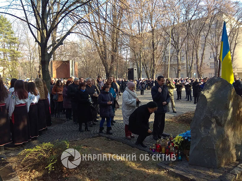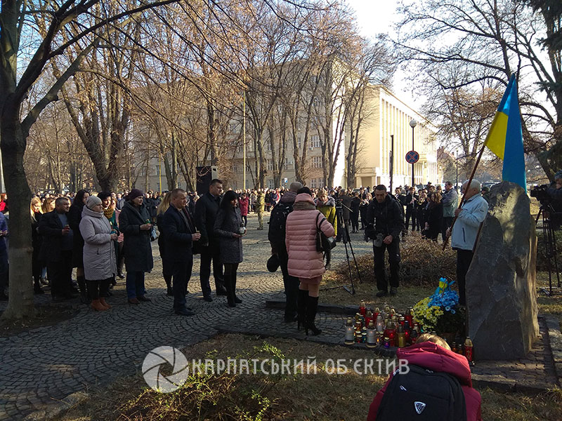Тому сьогодні на всій території України проводяться меморіальні заходи, присвячені пам’яті загиблих Героїв Небесної Сотні. Долучився до цього заходу і Ужгород. Так, поряд із приміщенням ректорату Ужгородського національного університету, що знаходиться на Площі Народній відбулося покладання квітів, свічок та лампадок до підніжжя Пам’ятного знаку борцям за свободу і незалежність України. Присутніми на заході були керівники нашої краю та обласного центру, велелюдна громада ужгородців та представники ЗМІ.
